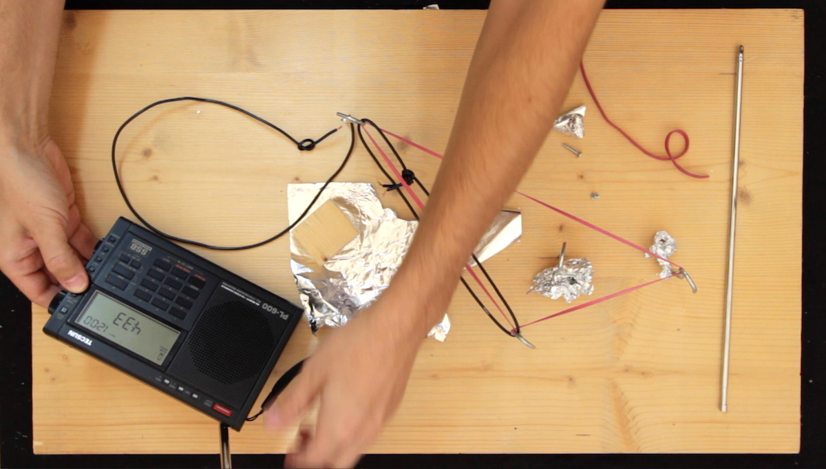 The multi-parted work “Firedrake“ examines attempts of the Chinese The multi-part work „Firedrake“ examines attempts by the Chinese government to censor foreign shortwave radio stations, known as jamming, and methods of circumventing this interference by manipulating radios. By constantly playing an hour-long piece of Chinese folk music entitled “Firedrake“, radio stations such as Voice of America, Radio Free Asia and BBC World Service are muted by the Chinese authorities. The DIY solution to bypassing Chinese jamming is to use modified radios outfitted with anti-jamming antennas. The materials needed to build these antennas pose the starting point for the acoustic improvisation featured in the video. Additionally, a fictional radio program can be heard that includes snippets of an interview, multiple recordings of shortwave radio stations and the “Firedrake” broadcast.