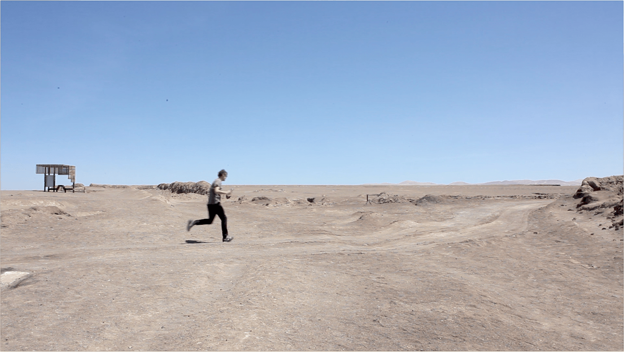 [su_accordion][su_spoiler title=“Deutsch“ open=“no“ style=“default“ icon=“plus“ anchor=““ class=““]Die Video-Performance »Persistent Disturbance« visualisiert die dreimonatige Reiseroute durch Südamerika auf absurde Weise. An jeder Stelle, an der die beiden KünstlerInnen innehielten, entstand eine kurze Klang- performance. Der Performer rennt unermüdlich mit einem Horn hupend durch die verschiedenen Land- schaften der Anden. Durch diese Erfahrung werden nicht nur die verschiedenen Orte gezeigt, sondern es entsteht gleichzeitig eine akustische Abtastung der jeweiligen Orte. [/su_spoiler][/su_accordion]